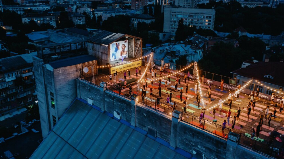 Традиционный ежегодный йога-ивент Nike прошел на видовой крыше в самом центре Киева под слоганом Reach Further («Достигай большего»).