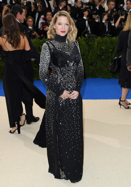 Леа Сейду на Vanity Fair Oscar Party 2020Коренная парижанка, Сейду обладает отменным чувством стиля. Ей удается органично вписать в свой образ как строгие брючные костюмы-двойки, так и торжественные платья, украшенные сверкающими пайетками или нежными перьями. Леа отдает предпочтение женственным и элегантными силуэтам, правильно подчеркивающим ее стройную фигуру, классической цветовой палитре и туфлям-лодочкам.