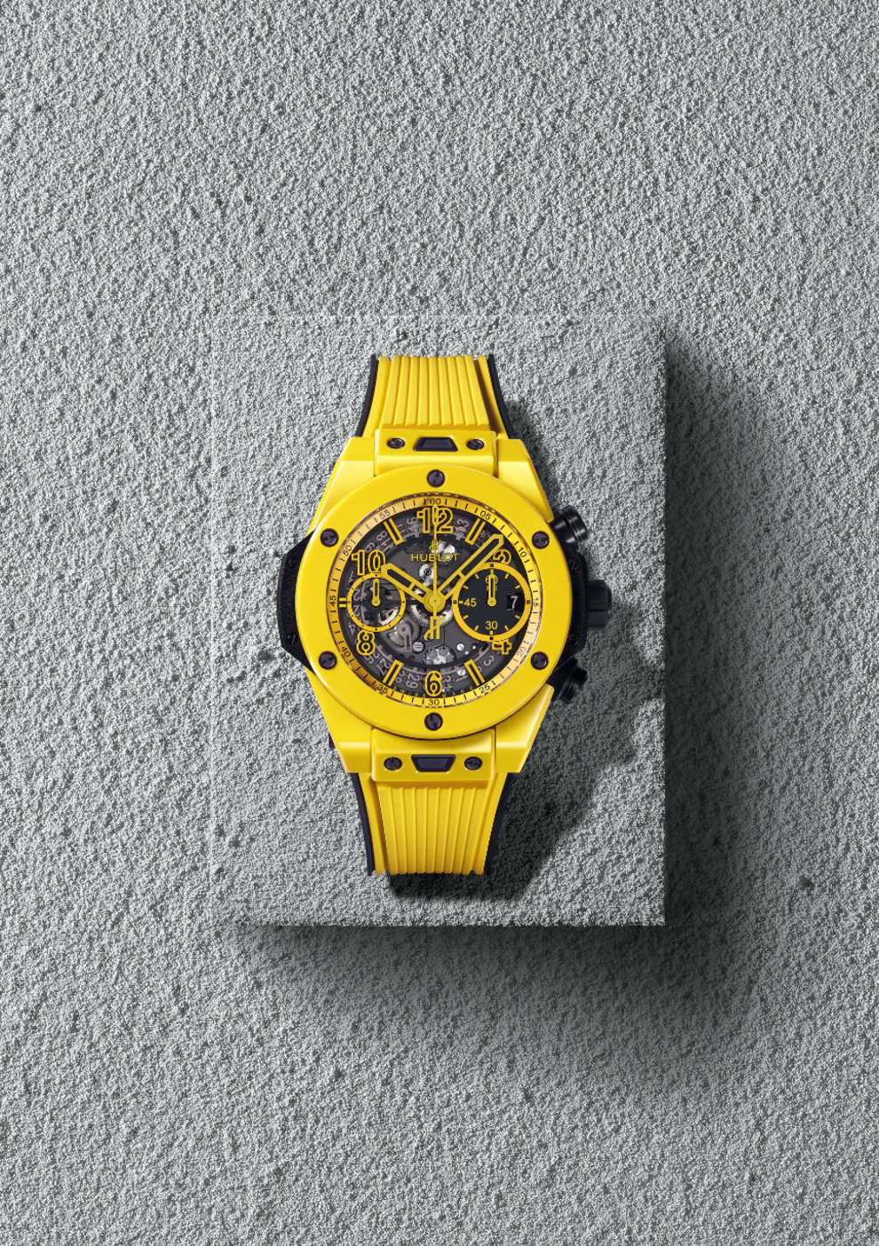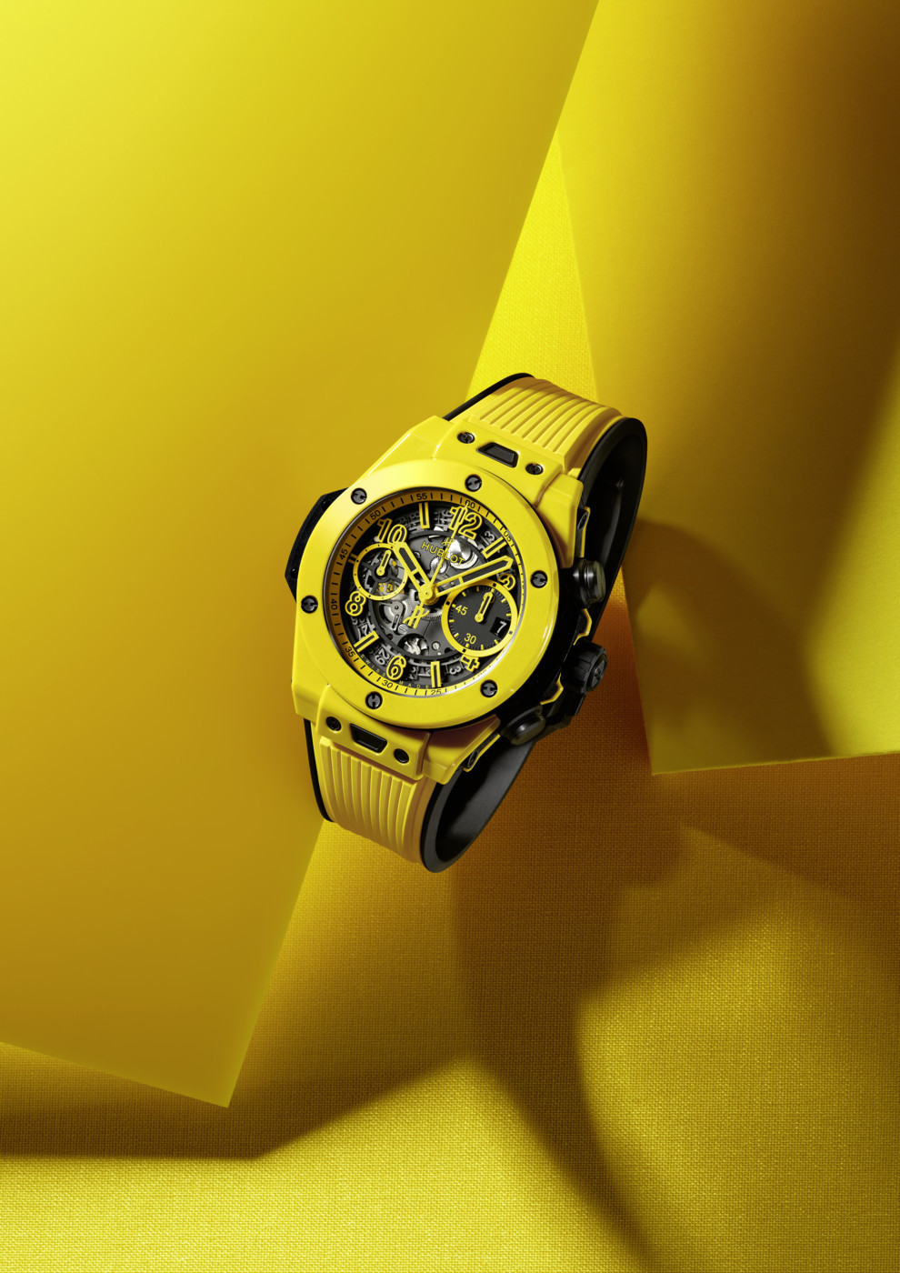 Yellow Magic – название новых часов из яркой высокотехнологичной керамики. Желтый – основной цвет, который широко встречается в природе. Однако в таком материале, как керамика, его сложно и почти невозможно воспроизвести. Как истинный лидер инноваций, Мануфактура Hublot благодаря своему богатому опыту смогла воплотить невозможное – создать первую керамику ярко-желтого цвета. Часы выпущены ограниченной серией из 250 экземпляров.