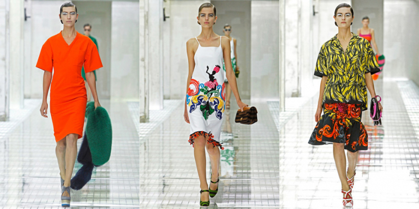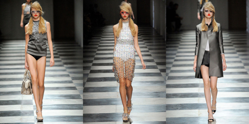 Prada весна-лето 2010Праду копировали на всех уровнях пищевой цепи еще до того, как fast fashion научился штамповать подиумные коллекции. Даже сегодня вдохновляться Prada — почти хороший тон. Дизайнер это понимает и с удовольствием меняет правила игры, ставя под вопрос стандарты модной системы и условный хороший вкус. В эклектичных и эксцентричных коллекциях Prada он почти всегда остается за скобками.