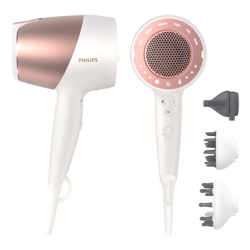Две новинки SenseIQ от Philips, фен и выпрямитель, – приборы, которыми мы пользуемся в повседневной жизни чаще всего. Их легко и безопасно использовать благодаря ряду параметров и внедренных инноваций. Продуманный дизайн устройств и цифровые программы помогают высушить или выровнять волосы гораздо быстрее, безопаснее для волос и удобнее. В комплектации приборов – защитный колпачок и чехол для комфортной транспортировки стайлера, а также 3 насадки для фена: концентратор, диффузор и массажер.