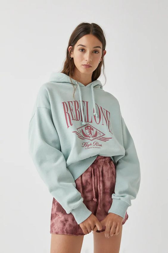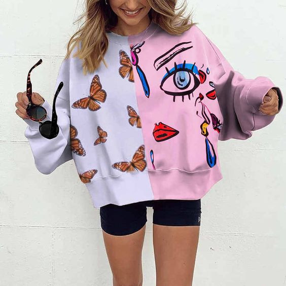 Сочные неоновые тона одежды с выразительными принтами подойдут для комплектации молодежного лука с нотками эпатажа. Нежные тона свитшотов типа розового, небесно-голубого помогут сформировать женственный и романтичный лук. Они хорошо сочетаются с юбками из легких, летящих тканей, с кружевом. Эти оттенки гармонируют с гаммой серого спектра. К примеру, костюмом, пиджаком и брюками дымчатого тона. Насыщенные цвета (красные, фиолетовые, зеленые) освежат монотонный ансамбль одежды.