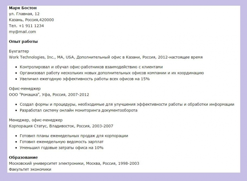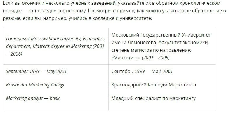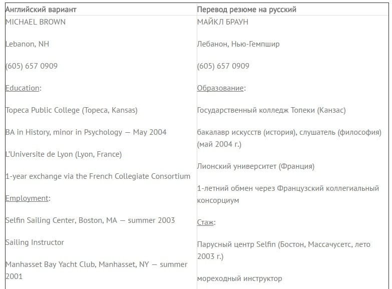 Если вы слабы в английском языке, вам понадобится пример заполненного резюме с переводом.