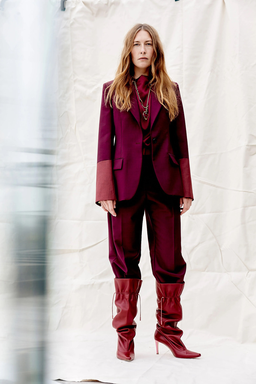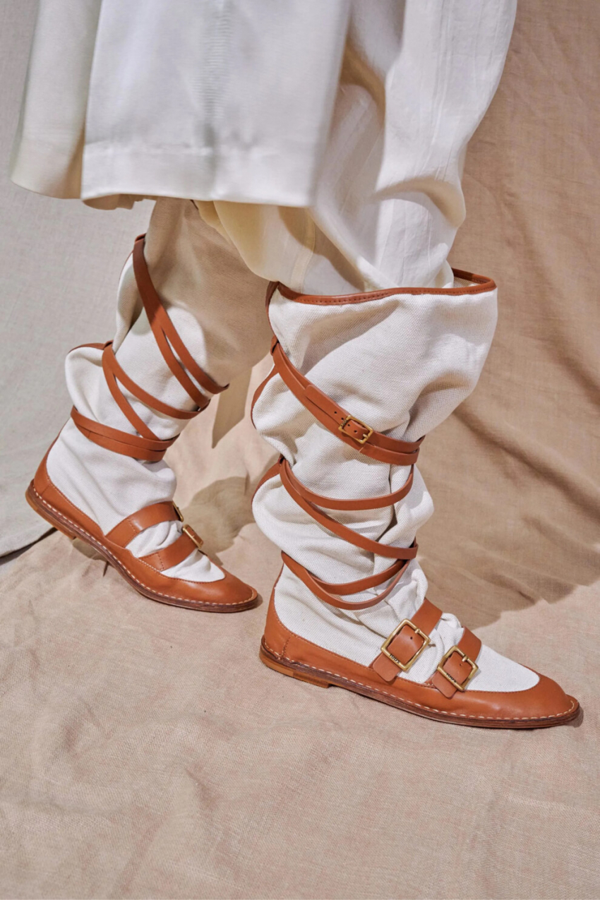 DiorГлавной must have позицией этой весны станут сапоги с присобранным голенищем. Такой обуви не нужно дополнительное обыгрывание – они сами способны стать главными героями любого образа. Сочетать их предлагаем и с брючными костюмами, как у Roksanda, и с шелковыми структурными платьями пастельных оттенков, как у Preen by Thornton Bregazzi.