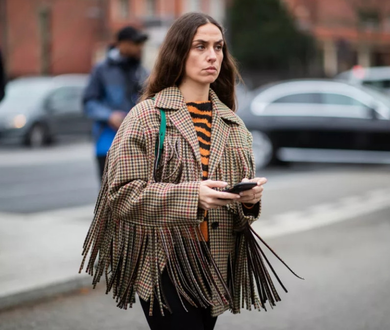 Весьма стильной и игривой новинкой сезона 2021-2022, согласно фото, стало пальто с бахромой. Достаточно фактурно тесьма выглядит на рукавах (по всей длине), спине или как отделка на карманах и вороте. Подобный декор способен сделать абсолютно любую модель интересной и запоминающейся.