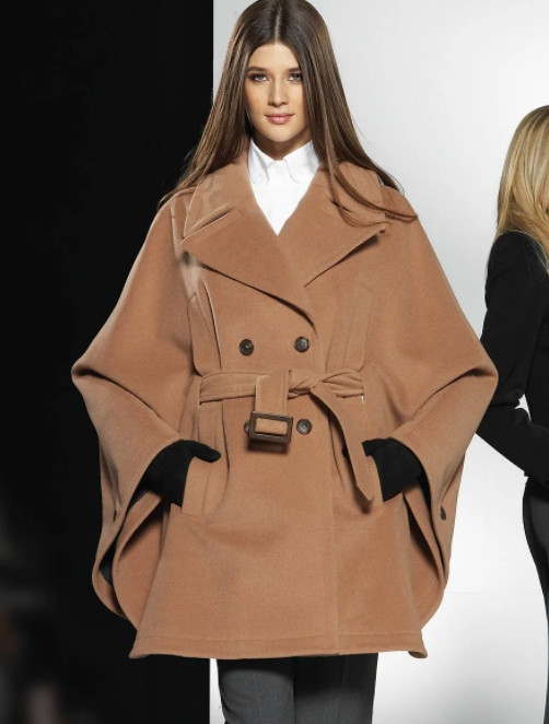 Его нестандартный, на первый взгляд, крой будет успешно гармонировать и с деловым луком, и с повседневным, и с вечерним. Кейп-пальто превосходно подойдет любому типу фигуры – от пышнотелых дам до стройных. Изюминка кейпов — их небрежный крой и нечеткие очертания.