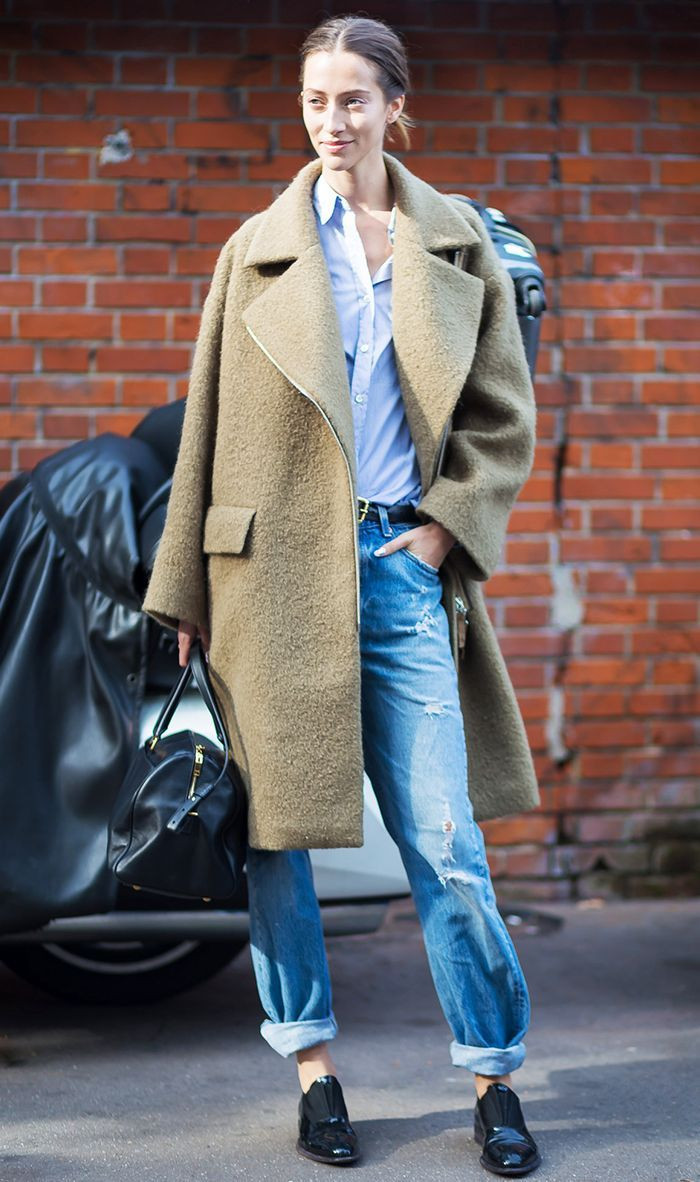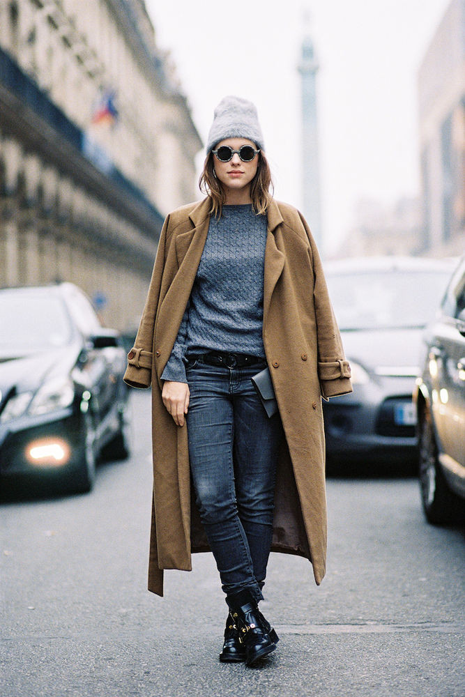 Декор излишний, все должно быть предельно просто и строго: нейтральная цветовая палитра, подплечники, карманы. Этот минимализм позволяет сочетать «мужское» пальто с мини и расклешенными юбками, стильной шляпой и кепи, а также ярким интересным шарфом.