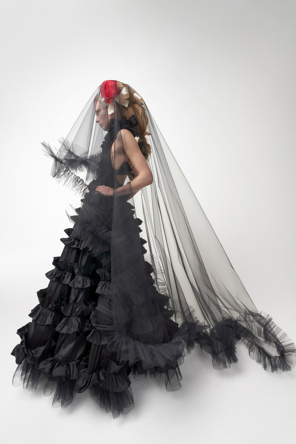 Giambattista Valli Couture весна-лето 2021Дизайнер не стал экономить на тюле для своих фирменных бальных платьев, которые с каждым разом становятся все шире, при этом не теряя свою восхитительность. Он показал многоярусные и многослойные творения, будто сотканные из сахарной ваты в пыльно-розовых, ярко-красных, чисто-белых или драматических черных тонах с золотыми точками. Некоторые были в форме лебедей, другие напоминали воздушную плиссированную ленту, а третьи отсылали к накидкам греческих богинь, расшитым страусиными перьями. Помимо объемов, одной из главных линий в коллекции стали эффектные рукава. Giambattista Valli представили ниспадающие епископские рукава, расклешенные варианты и пышные рукава-фонарики. Образы дизайнер завершил объемными прическами, вдохновленными фотографиями итальянской топ-модели Бенедетты Барзини и американской актрисы и модели Марисы Беренсон 1960-х годов.