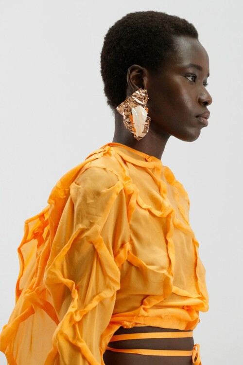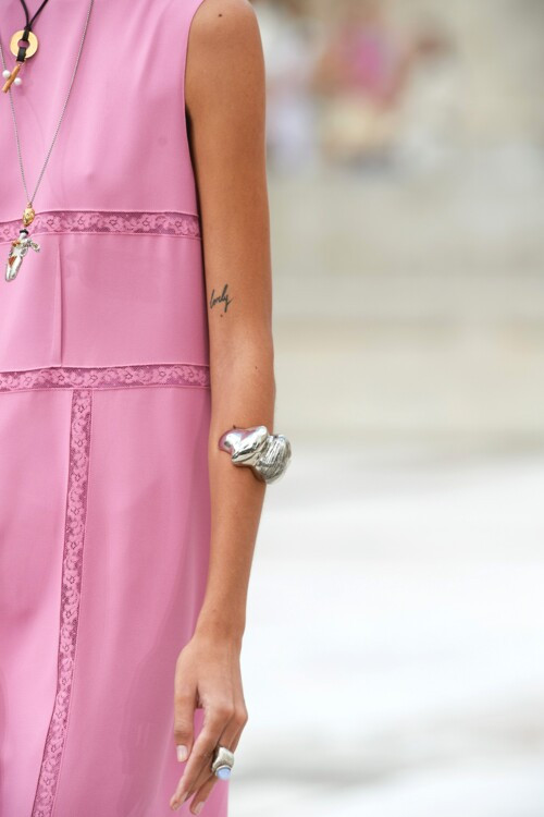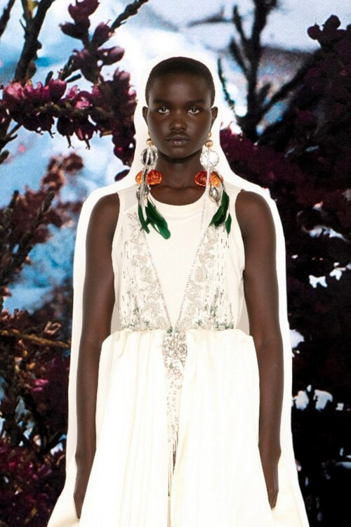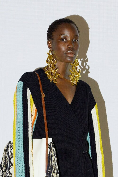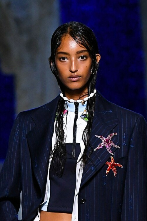 Некоторые бренды сделали ставку на узнаваемость. У Prada количество аксессуаров было сведено к минимуму, и моносерьги с фирменным логотипом стали одними из немногих украшений. В Schiaparelli Дэниел Розберри продолжил сюрреалистическое наследие своего основателя, создав позолоченные серьги внушительного размера и наперстники.