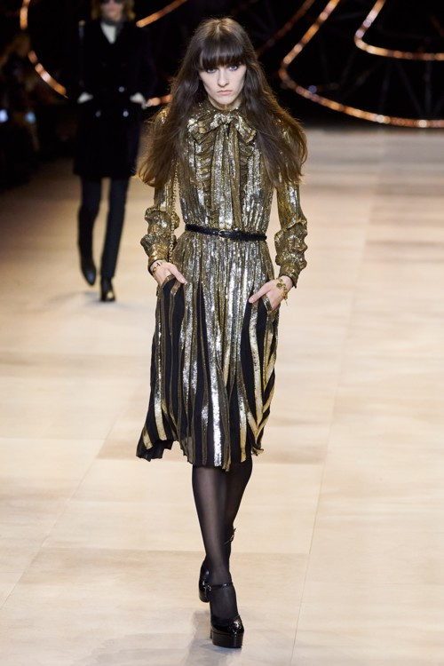 BurberryСамыми актуальными в этом сезоне стали платья в оттенке хромированного серебра: такие варианты можно найти в коллекциях Andrew Gn, Paco Rabbane, Alberta Ferretti, Sportmax, Altuzarra, Miu Miu, Erdem и Versace. Они хороши не только своей самодостаточностью, ведь им не нужны сложные обрамления в виде многоярусных украшений, но и бесконечной функциональностью: сочетать такие платья можно и с любимыми лодочками на каблуке, и с армейскими ботинками, и с пальто длины макси, и даже с объемным пуховиком. Еще одними фаворитами сезона стали платья с золотистым отблеском, как в коллекциях Emilia Wickstead и Y/Project. Лучшими союзниками таких моделей станут популярные геометрические сумки и обувь с квадратным мысом. Платья с эффектом металлик станут хорошей инвестицией в базовый гардероб, ведь дизайнеры настоятельно рекомендуют не скромничать и носить их не только по особым случаям, но и в будни.