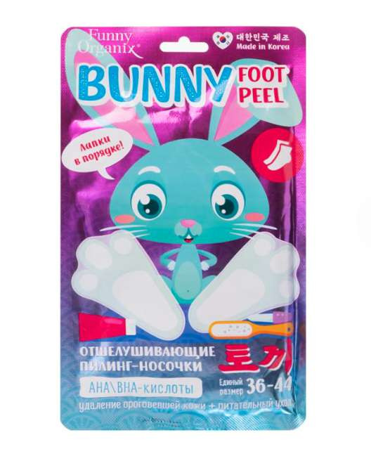 Пилинг-носочки «Bunny» от Funny Organix (найдены в Fix Price) созданы для удаления ороговевшей кожи и питательного ухода за кожей ног. Носочки содержат AHA/BHA-кислоты, поэтому отлично ухаживают за вашими пятками.