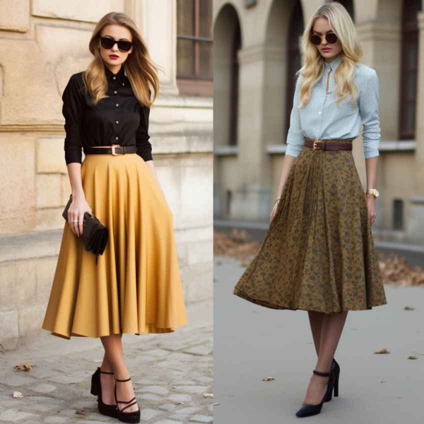 - Одним из элементов женской одежды 70-х являются юбки-миди. Они отлично подходят для создания женственного и элегантного образа. В сочетании с рубашками с узорами, обувью на высоком каблуке и оригинальными аксессуарами, юбки-миди помогают создать неповторимый образ в стиле 70-х.