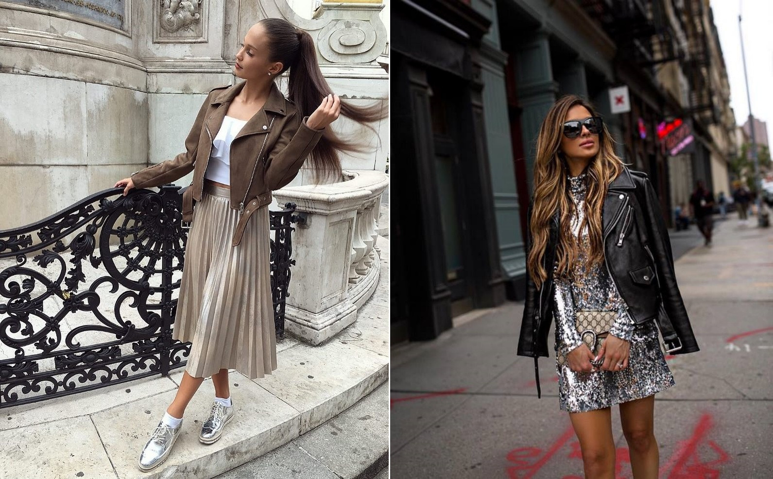 Блестящая кожаная куртка станет отличным акцентом в любом образе, поможет создать не только красивый, но и запоминающийся аутфит. Особенно актуально это в решениях демисезонных кожаных курток.
