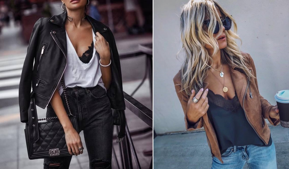 Кожаную куртку лучше всего надевать на майку, подобрав любой низ — от джинсов до нарядной юбки. Также можно надеть эту верхнюю одежду на платье или костюм. Выбор за вами и за вашим настроением!