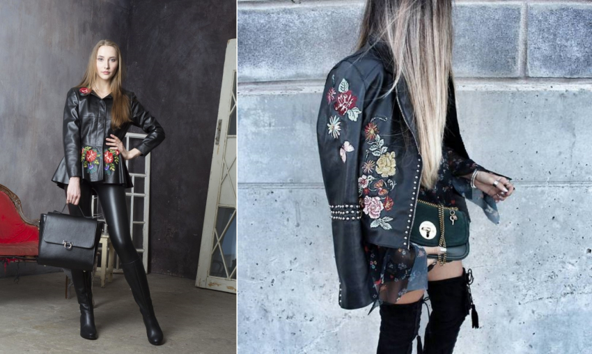 В моде 2023 года — вышивка, которая придаст вашему образу женственности и романтичности. Очень уместна вышивка в том числе и на модных моделях кожаных курток. Идей их выполнения будет огромное множество, как говорится, на любой вкус и цвет.