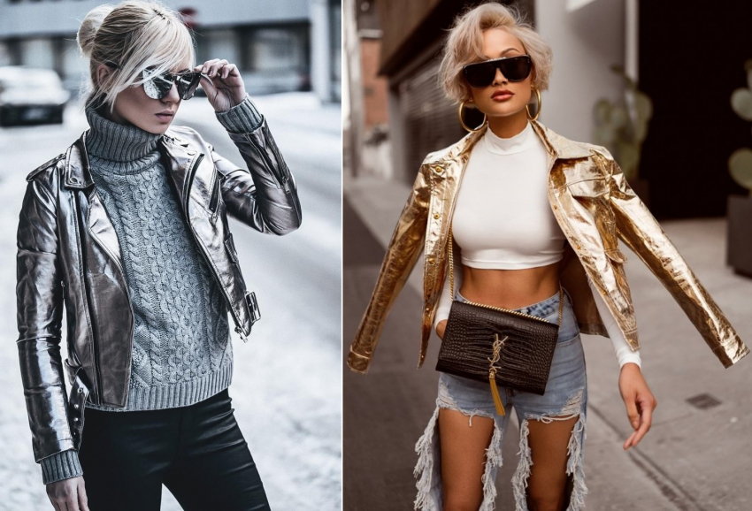 Очень интересной и модной в новом сезоне будет кожаная куртка в стиле металлик. Она обязательно привлечет внимание и выделит вас из серой толпы, благодаря своей необычности и выразительности.