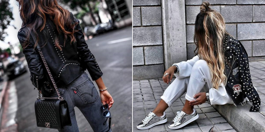 Конечно, этот декор не новый, но в 2023 году он станет особенно модным и актуальным в женских кожаных куртках. Смотрится такая модель очень эффектно. Заклепки могут быть абсолютно везде: спереди, на спине, на рукавах или воротнике. Порой именно заклепки будут создавать по-настоящему захватывающие узоры.