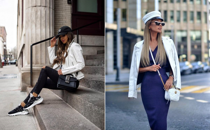 Белая кожаная куртка позволит создать изящный и легкий образ, придаст внешности нарядности и изысканности.