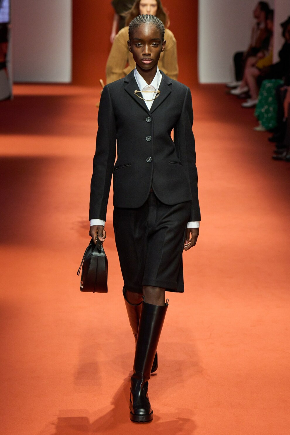 Tod'sКласичну шкільну чорно-білу уніформу можна було побачити на показі осінньо-зимової колекції Tod's. Та замість звичної спідниці бренд запропонував вибрати бермуди – стильну альтернативу, що завжди буде актуальна. Додати такому образові особливості до снаги незвичним, але стриманим прикрасам, як-от золота брошка.