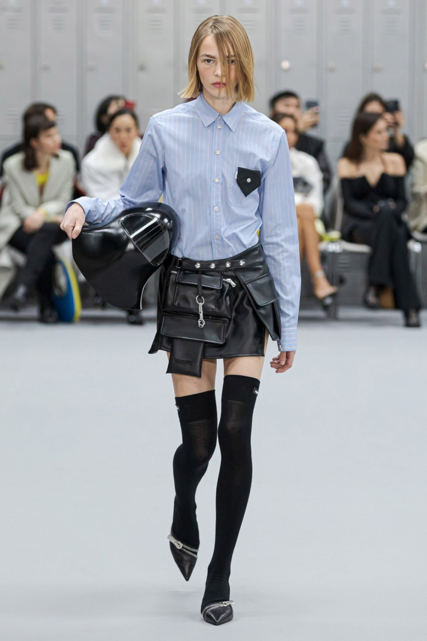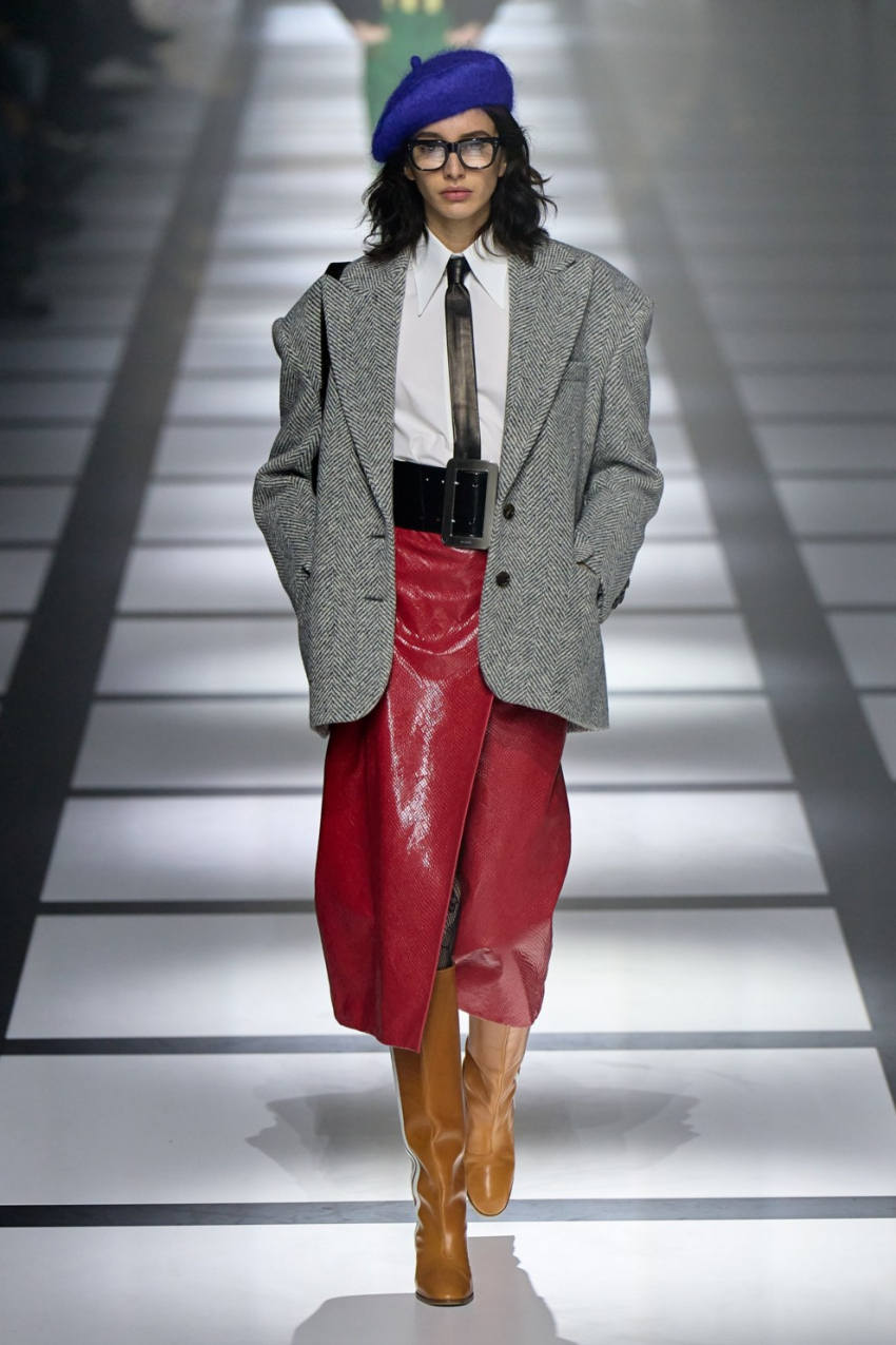 CoperniMiu MiuОбігрування на тему нового шкільного екіпування представили Сoperni та Miu Miu. Так, дизайнери додали образам у стилі препі певної зухвалості – звична довжина міді змінилася на міні. Шкіряні шорти й спідниці вміло римуються з сорочками та джемперами, туфлями на підборах і балетками, що знову повернулися у світло модних софітів. Серед обовʼязкових елементів – панчохи, вище від колін або елегантно зібрані біля взуття.
