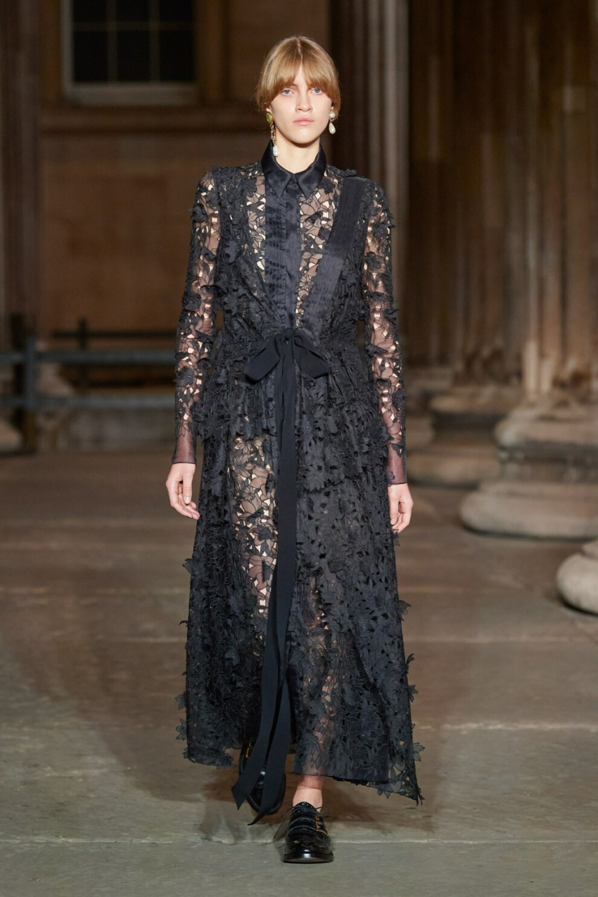 Ports 1961Dolce & GabbanaErdemНе тільки світле мереживо є синонімом легкості. Візерунки темних кольорів також можуть бути лаконічними й не менш ефектними. Доказом тому є покази Erdem, Dolce & Gabbana та Ports 1961. Топи, сукні довжини міні або максі – що б ви не обрали, дизайнери єдині в одному: абстрактні або флористичні невагомі переплетіння стануть справжньою прикрасою будь-якого образу. Лук, представлений у весняно-літній колекції, – вибір найсміливіших модниць. Так, дизайнери зробили ставку на поєднання штанів, зроблених з мережива з люрексом, і бралета, прикрашеного лелітками. Gucci ж повернули на модні подіуми білизняний стиль, продемонструвавши напівпрозору мереживну сукню.
