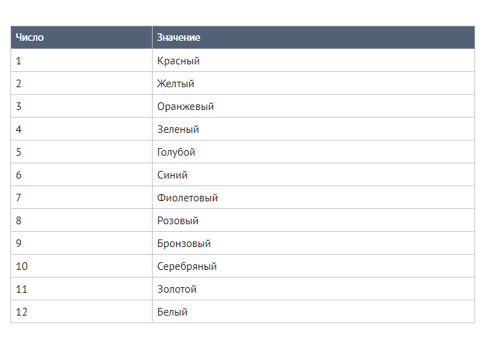 А теперь определяем цвет методом поиска нужного числа. В нашем случае – это бронзовый колер.